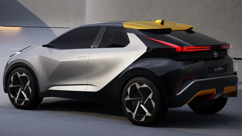 Rispetto alle versioni ibride, il design del C-HR+ si mantiene fedele alle linee dinamiche e sportive del modello tradizionale, ma incorpora dettagli moderni che enfatizzano l’aerodinamica e un’estetica futuristica.